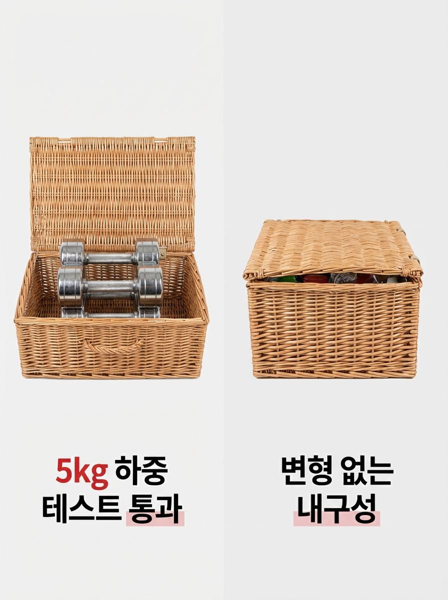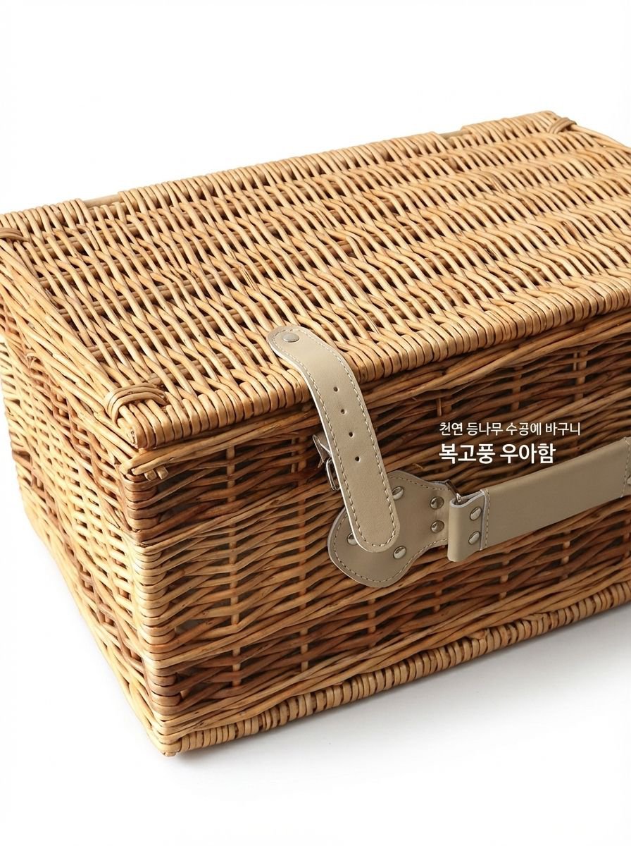 ● 휴대용 피크닉 바구니는 등나무 라탄 소재로 제작되어 견고하면서도 가벼워 야외 소풍이나 캠핑에 최적화되어 있습니다.