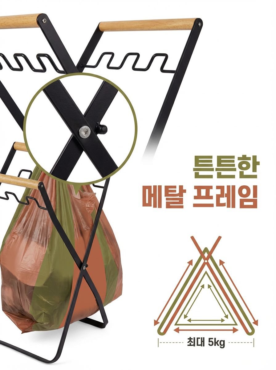 ● 튼튼한 금속 소재로 제작되어 내구성이 뛰어나며, 무거운 쓰레기도 안전하게 지탱해줍니다.
